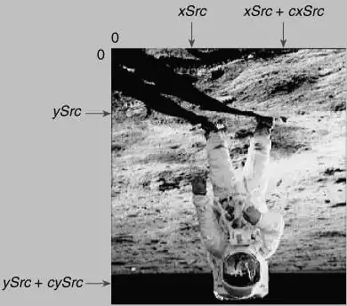 在此应定义一些术语,当我们说「顶行」和「底行」时,指的是当其正确显示在显示器或印表机的页面上时出现在虚拟图像的顶部和底部。就好像肖像的顶行是头发,底行是下巴,在DIB档案中的「第一行」指的是DIB档案的色彩对照表後的图素行,「最後行」指的是档案最末端的图素行。