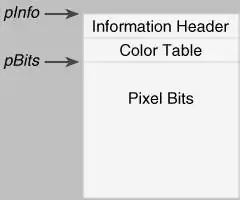 紧跟在色彩对照表(24位元DIB中是资讯表头)後的资料是图素位元本身。