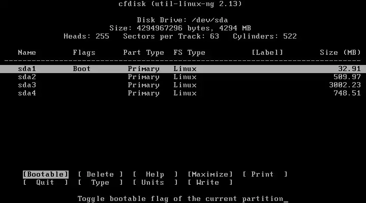 建立好分区后,将根目录所在的分区设置为 Bootable[76]