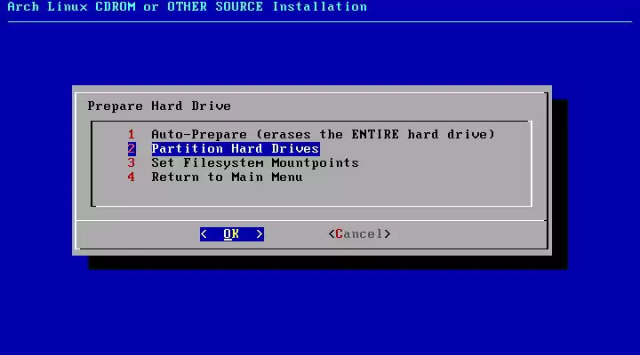 /arch/setup 脚本(安装程序)将在“字符图形”界面中调用上述工具:
