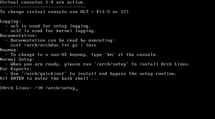 /arch/setup 是在安装介质中 FreeBSD 风格的安装脚本,安装 Archlinux ,其实就是进入作业平台后,运行这个脚本。